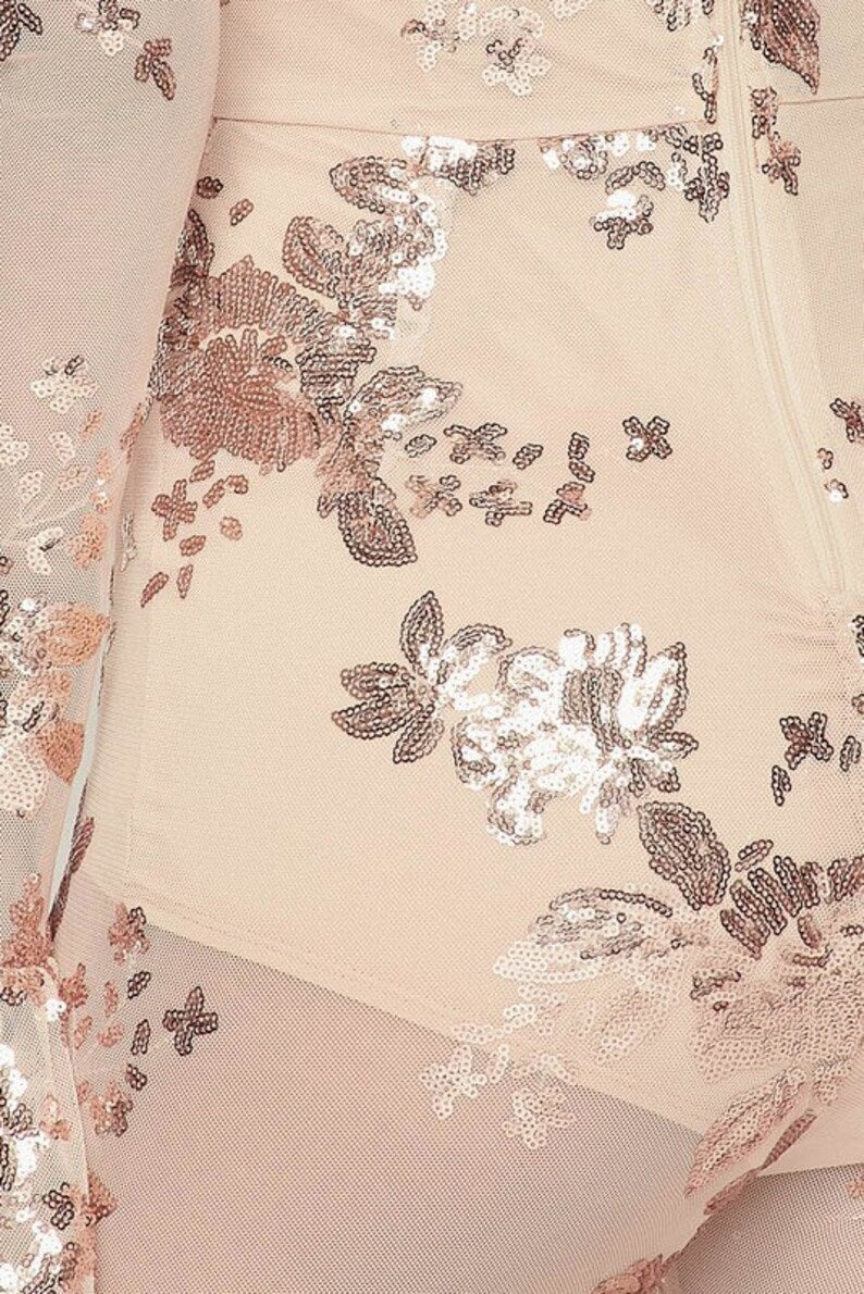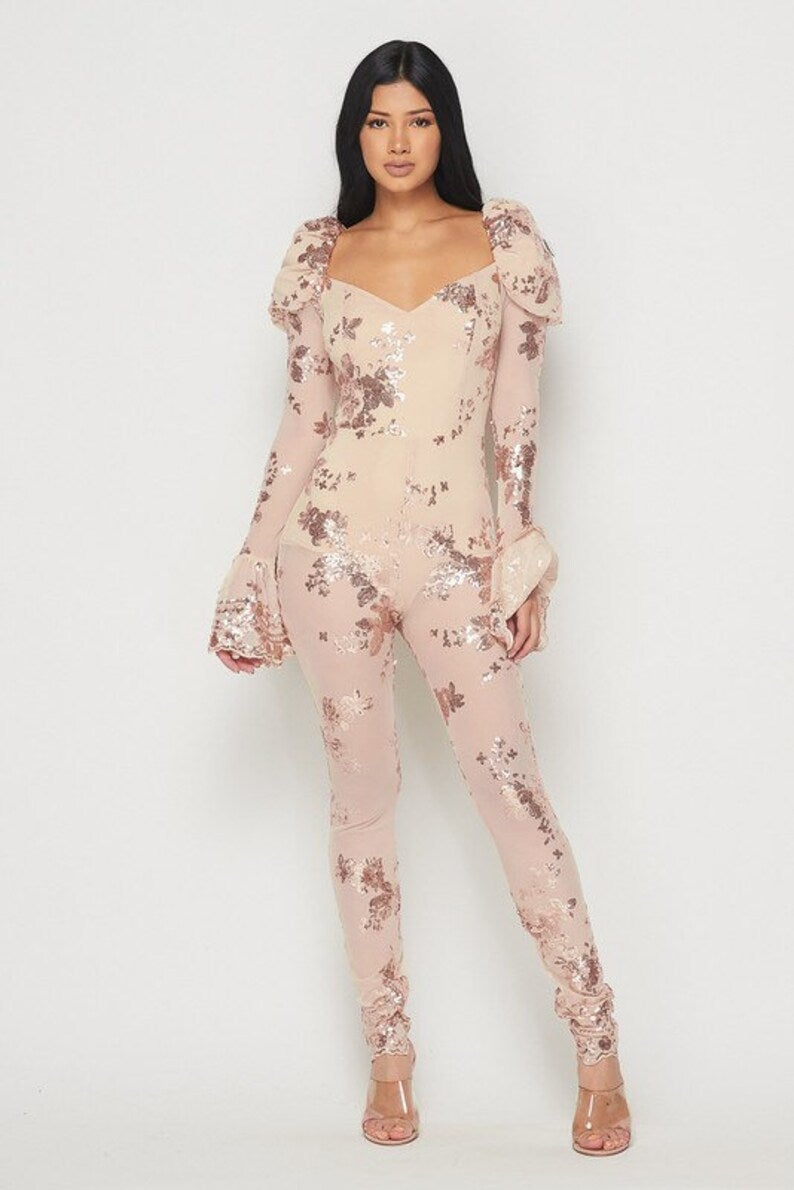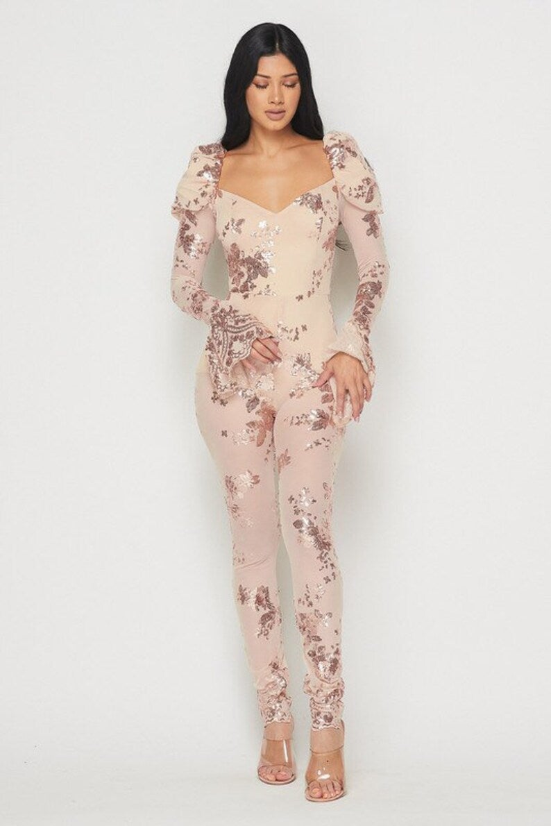 Long Sleeve Sequins Jumpsuit with Puff Shoulder